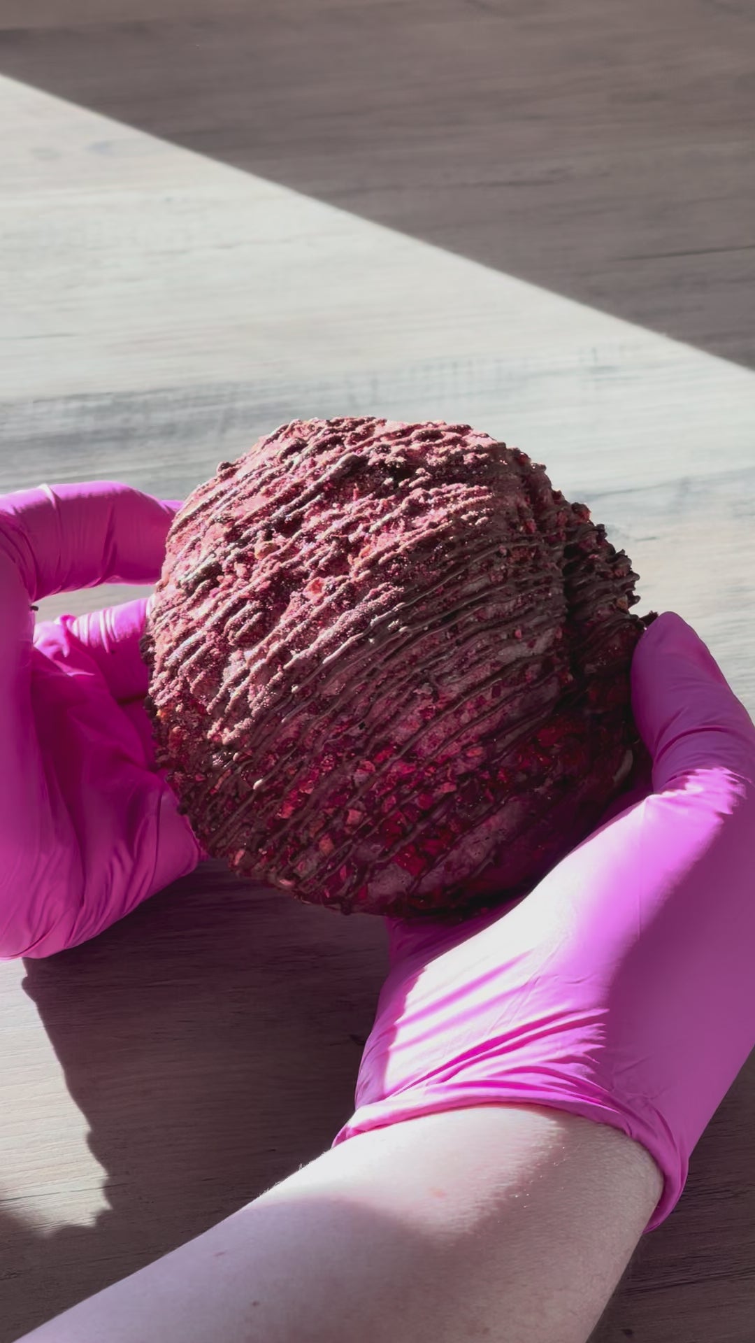Soft, thick strawberry cookie made with real strawberries, dipped in chocolate and finished with a chocolate drizzle. A bakery-style take on the classic chocolate-covered strawberry.